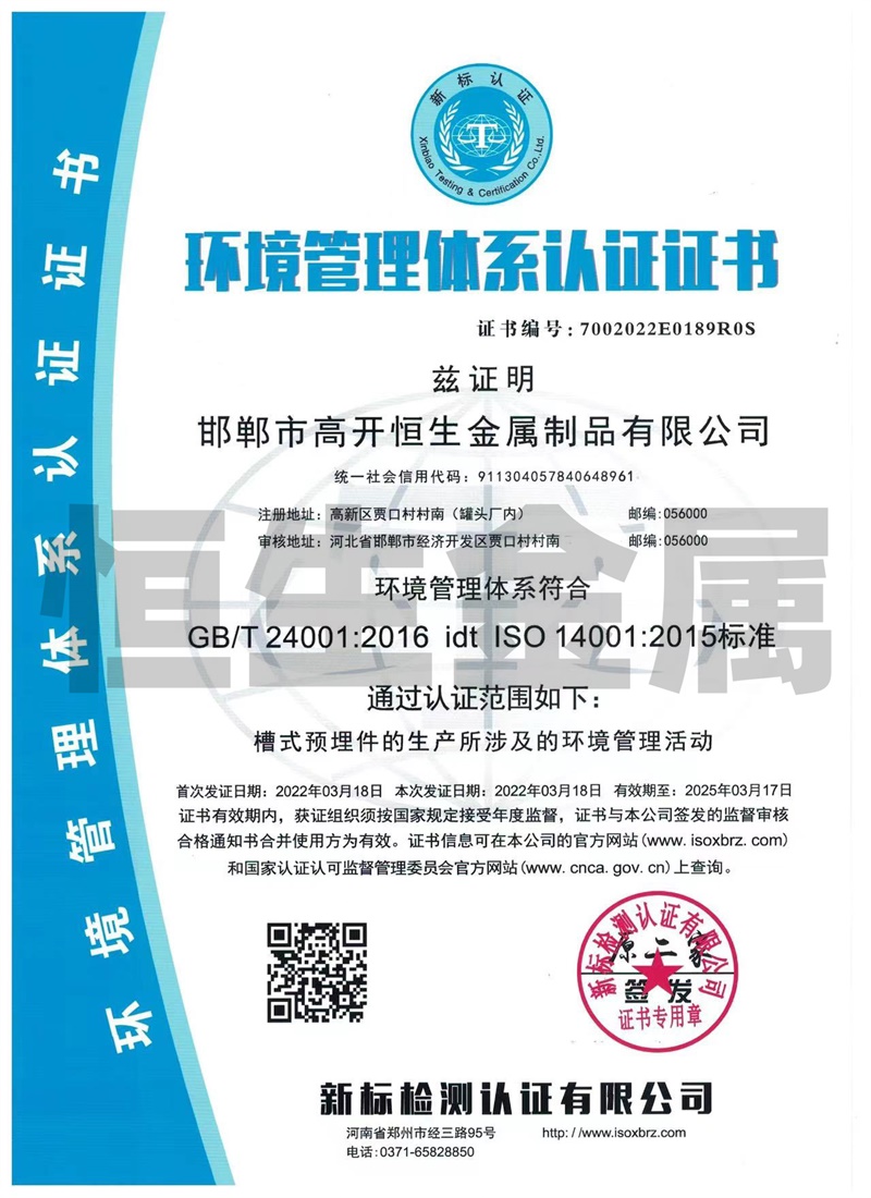 邯鄲市高開恒生金屬制品有限公司總部設(shè)在鋼城河北邯鄲,西鄰京廣線、東臨京深高速,地理位置優(yōu)越,交通比較便利。 我廠擁有多年生產(chǎn)預(yù)埋槽道的產(chǎn)品生產(chǎn)經(jīng)驗,專業(yè)生產(chǎn)鍍鋅防腐槽型預(yù)埋件系列產(chǎn)品,其中產(chǎn)品包括:高開恒生哈芬槽、哈芬槽鋼、預(yù)埋槽道、預(yù)埋滑槽、帶齒預(yù)埋槽鋼、槽式預(yù)埋件、工字鋼材料、C型槽材料配套的T型螺栓,也可根據(jù)客戶需求按圖訂做加工,產(chǎn)品廣泛應(yīng)用于隧道、城市軌道交通、地下綜合管廊、建筑幕墻施工工程。